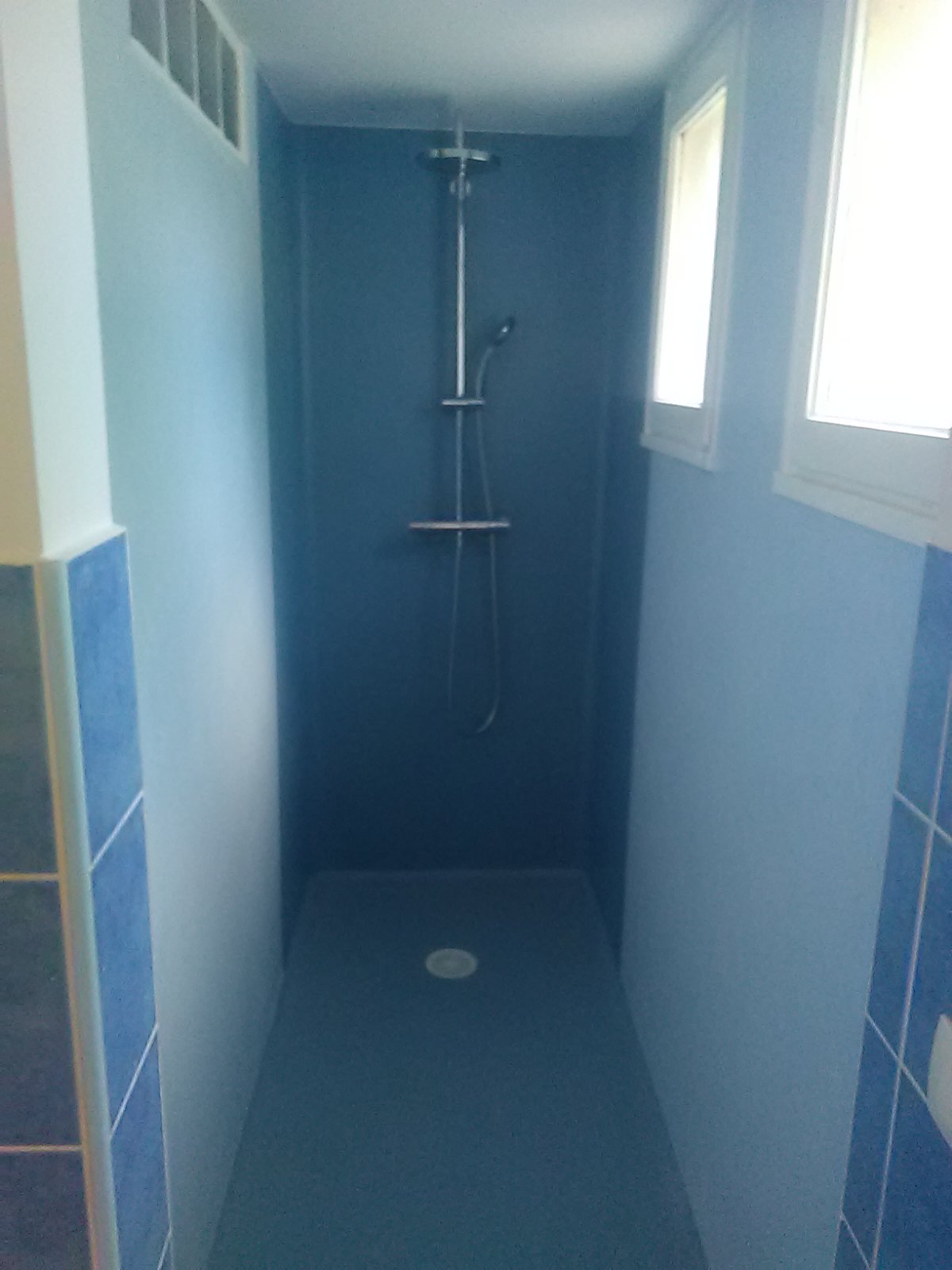 Nous réalisons également des bacs à douche extra-plats, combinés à un sol PVC étanche et antidérapant, et à un habillage mural en PVC ou faïence, pour un rendu élégant et pratique.